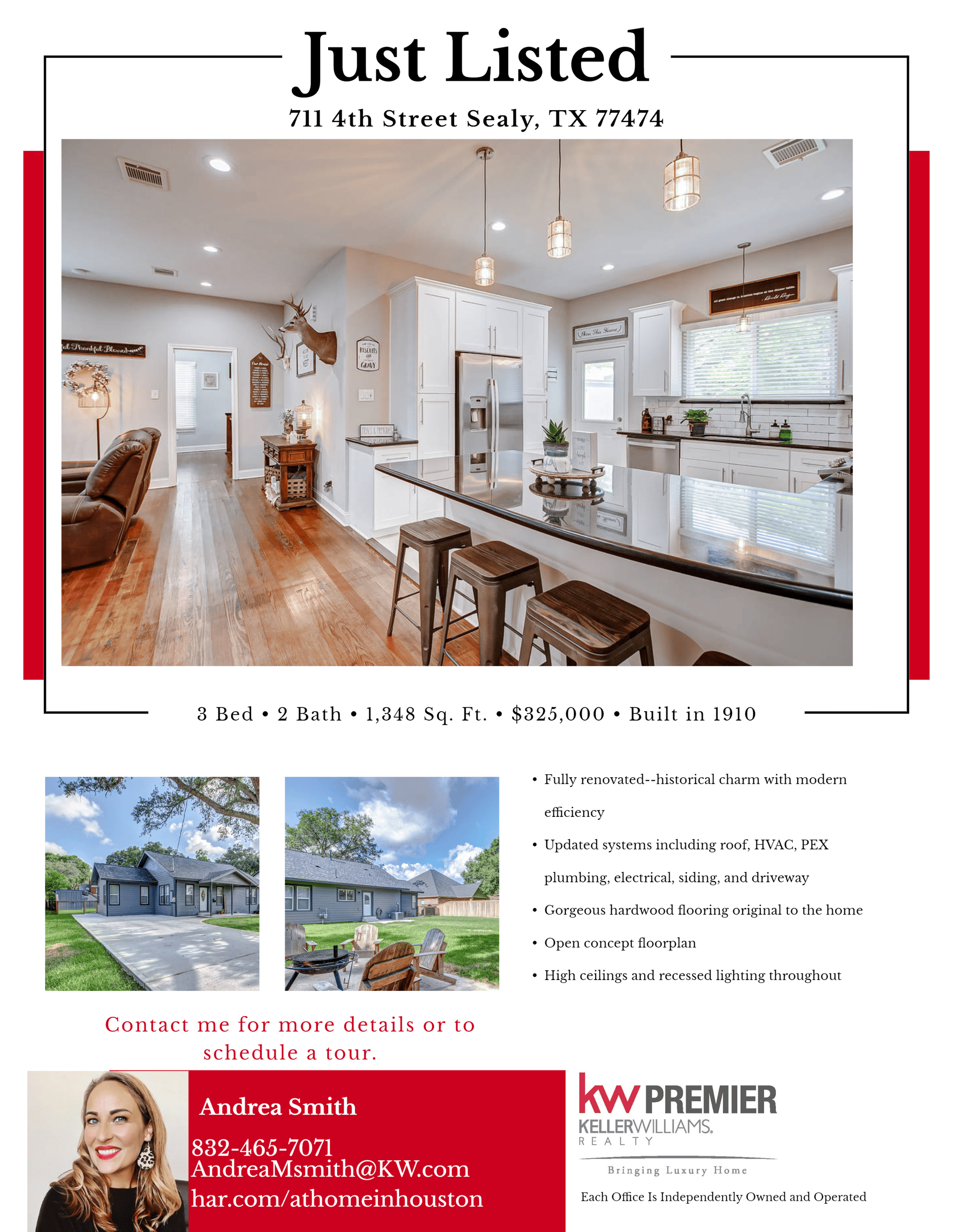 This 3 bed/2 bath home located on a large lot in the heart of Sealy was originally constructed in 1910.